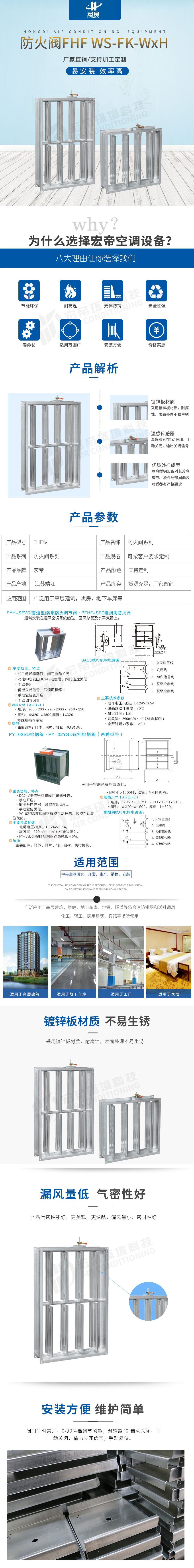 平时常开,0-90°4档调节风量;温感器70°自动关闭,手动关闭,输出关闭信号;手动复位。