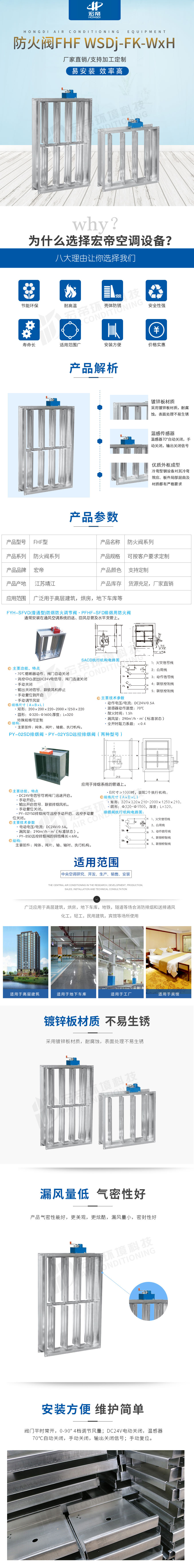 防火阀FHF-WSDj-FK-WxH平时常开,0-90° 4档调节风量;Dc24V电动关闭,温感器70℃自动关闭,手动关闭,输出关闭信号;手动复位,电动复位。