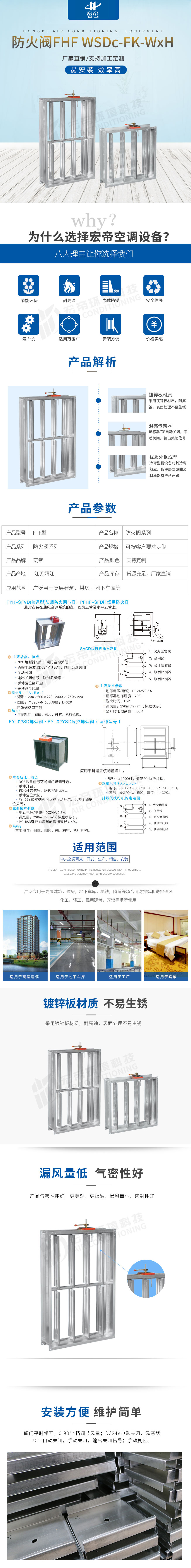 防火阀FHF-WSDc-FK-WxH平时常开,0-90° 4档调节风量;Dc24V电动关闭,温感器70℃自动关闭,手动关闭,输出关闭信号;手动复位。